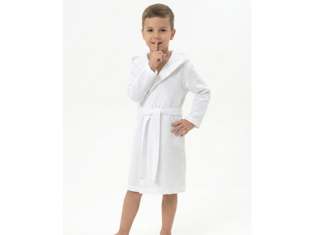 Lehký dětský župánek z trojvrstvého 100% bavlněného mušelínu – měkký, pohodlný a prodyšný. Dětem poskytuje pocit volnosti a pohodlí při každém odpočinku. Ideální do wellness, SPA i domů.