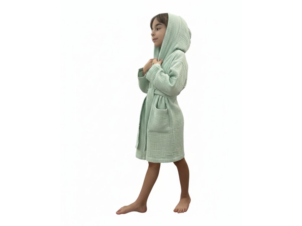 Lehký dětský župánek z trojvrstvého 100% bavlněného mušelínu – měkký, pohodlný a prodyšný. Dětem poskytuje pocit volnosti a pohodlí při každém odpočinku. Ideální do wellness, SPA i domů.